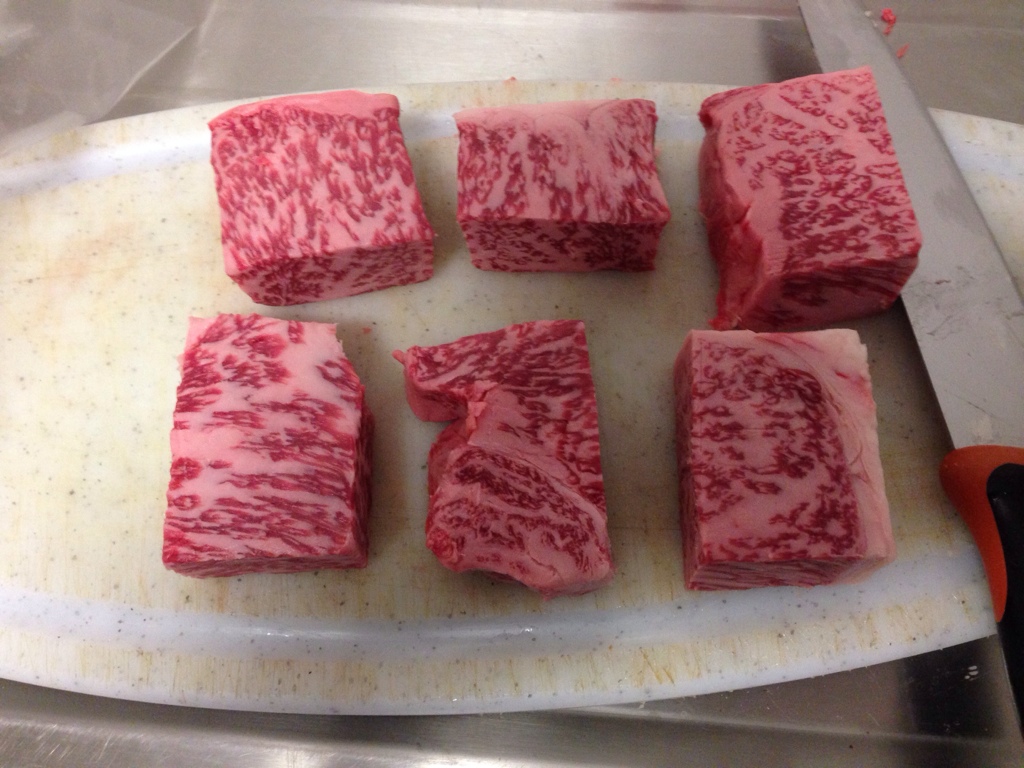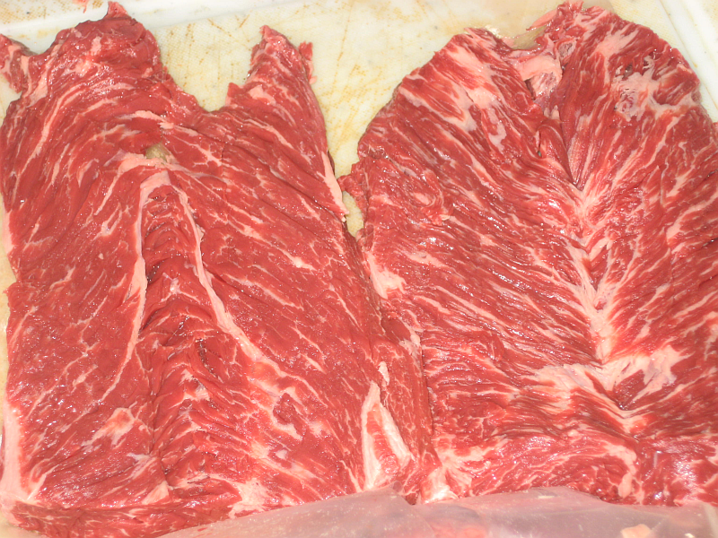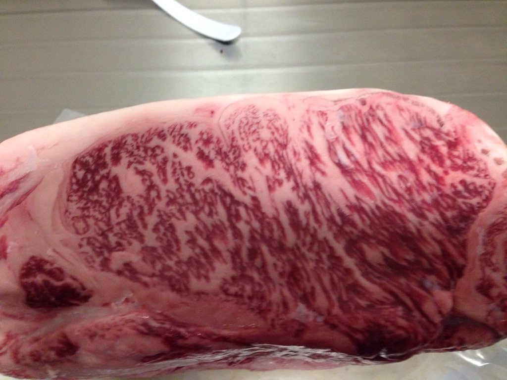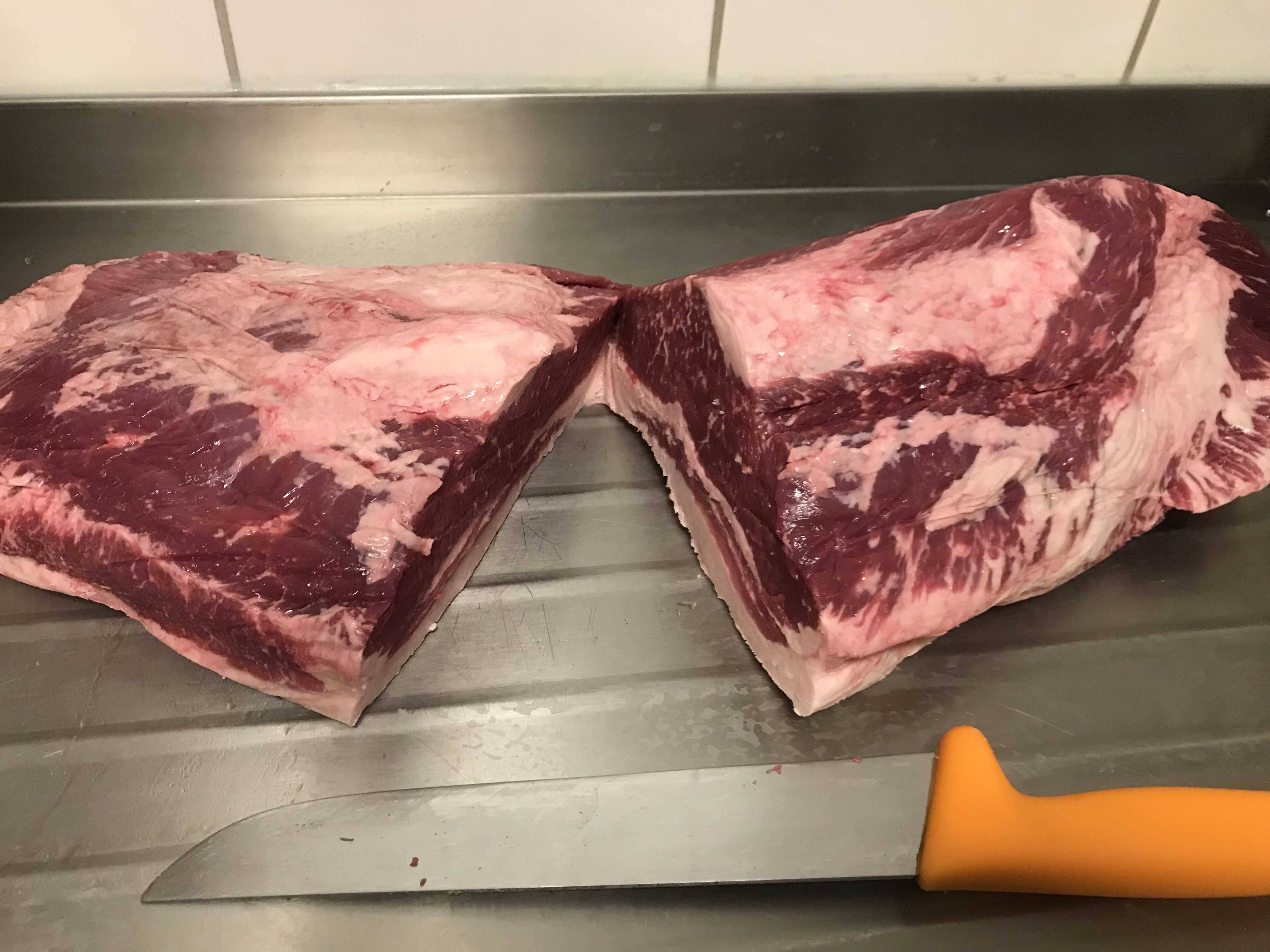 Durch die gute Marmorierung kann man das Fleisch sehr gut