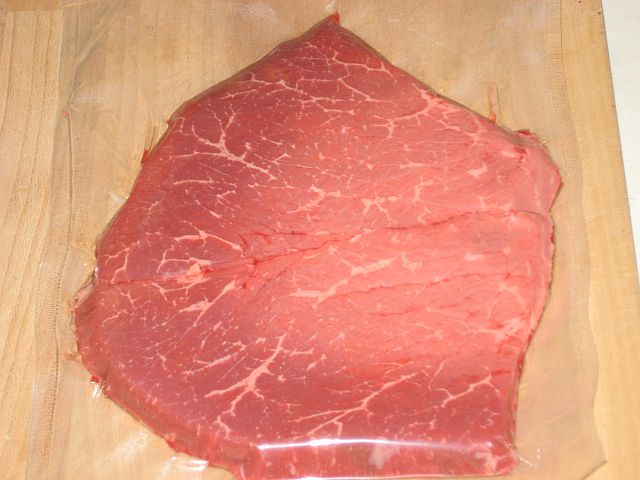 Ende. Am besten marinieren und dann in Scheiben schneiden . Man